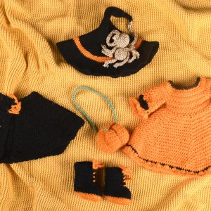 Poate fi îmbrăcată într-o frumoasă rochiță portocalie cu corset negru, cizmulițe și pălărie asortate.